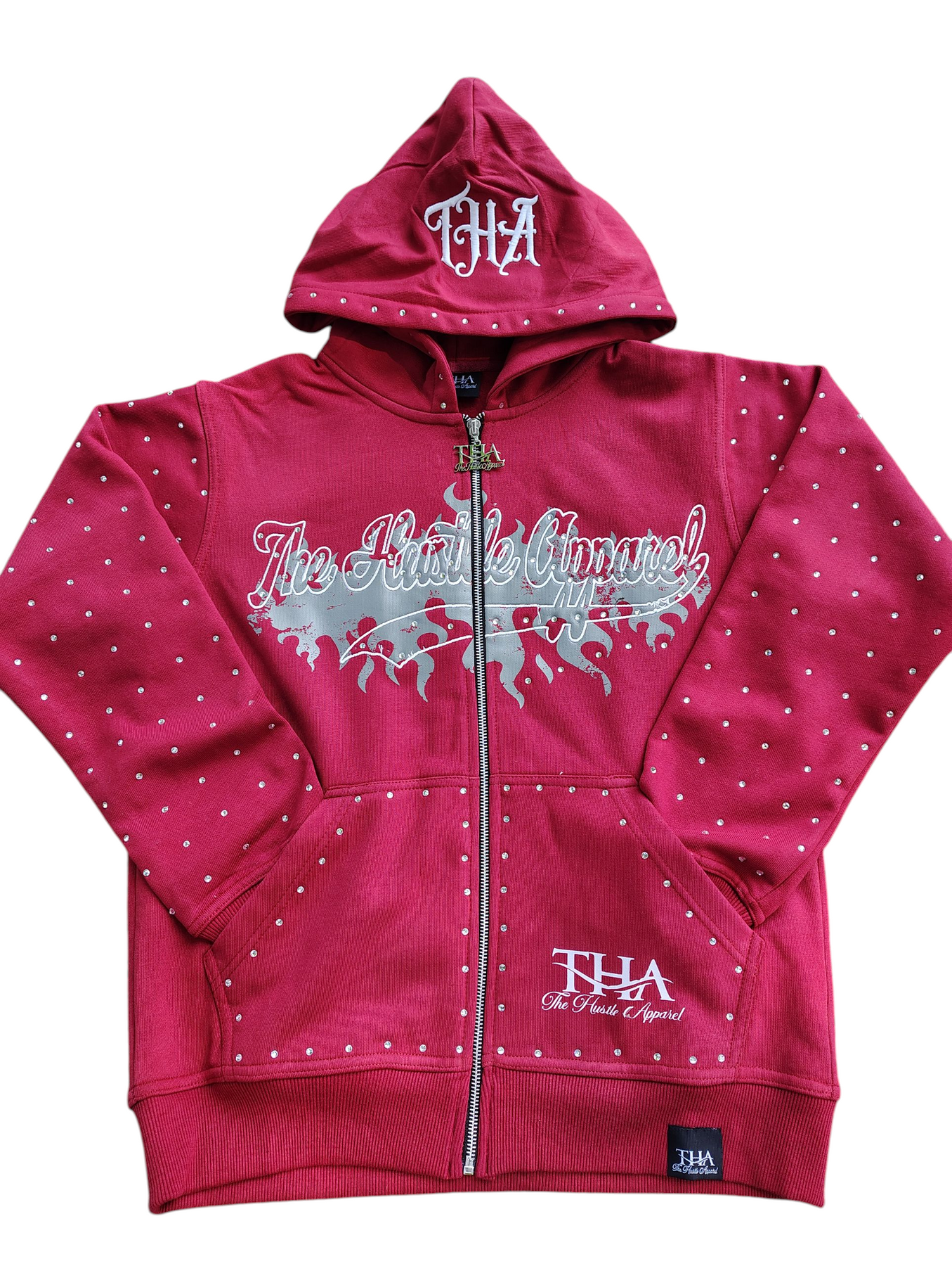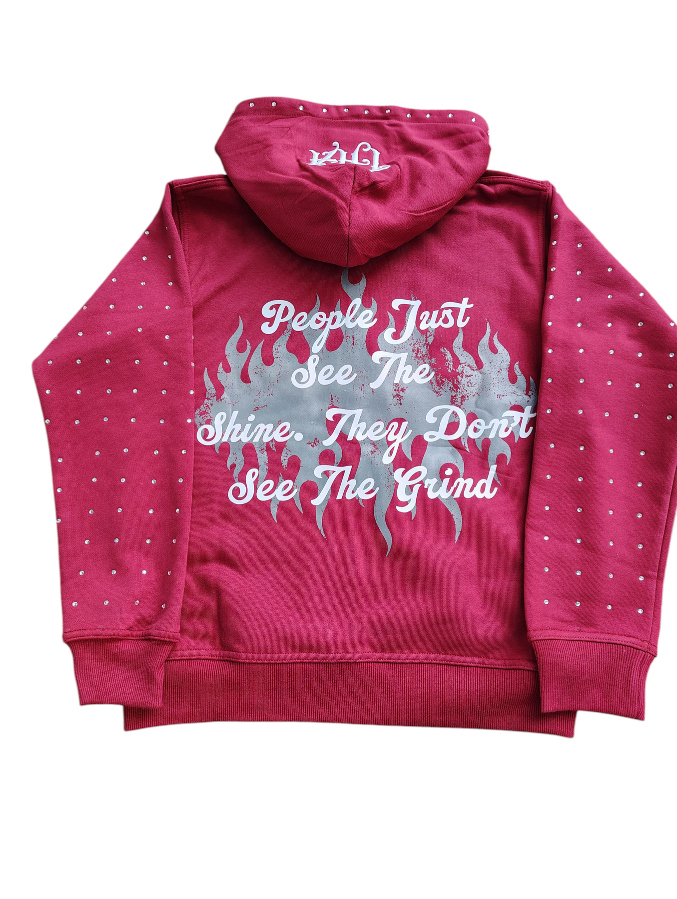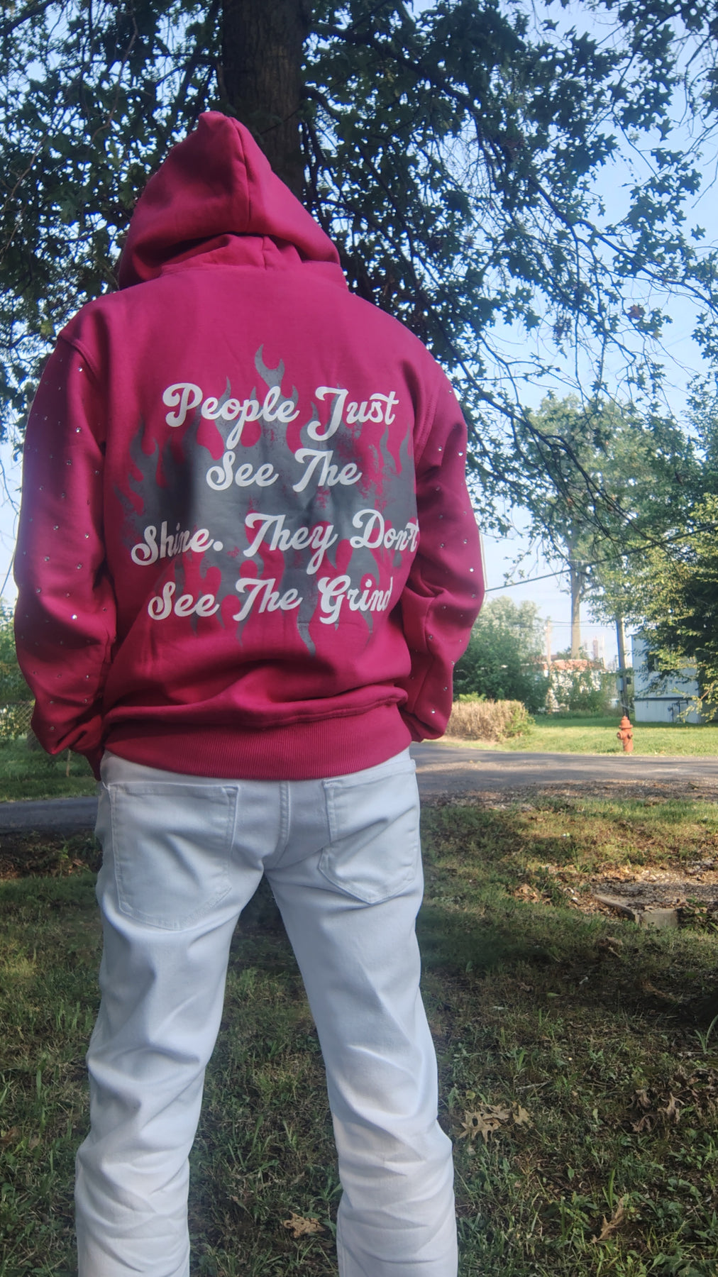 Burgundy Rhinestone Hoodie - The Hustle Apparel
