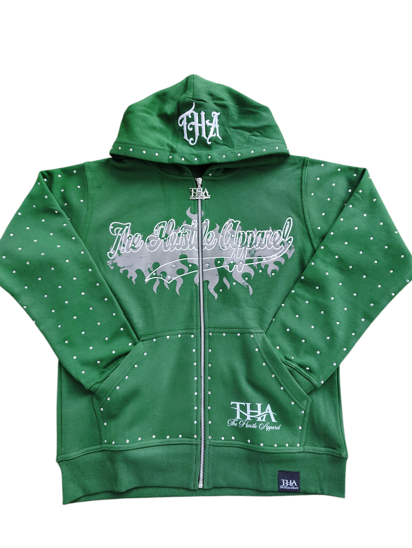 Embrace your bold side with our stunning Green Rhinestone Hoodie. This vibrant piece brings fresh energy to your wardrobe while keeping you comfortable and stylish.